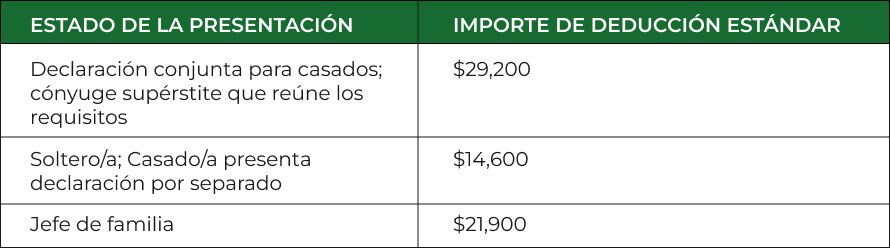 Los nuevos montos para las declaraciones de impuestos de 2024 se muestran a continuación. El aumento de la deducción estándar