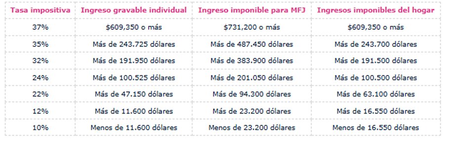 Para el año fiscal 2024, el tipo impositivo máximo se mantiene en el 37%. Todos los demás tipos se